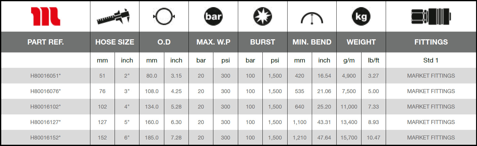 • Delivery hose for fire-water deluge hose applications on oil rigs