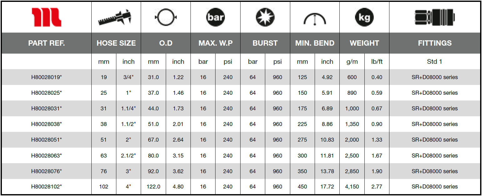 • Robust hose structure for longer life in severe applications